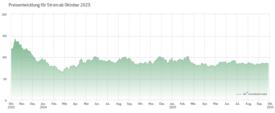 Der Frontjahreskontrakt fiel zu Quartalsbeginn von rund 93 € auf etwa 87 €. Im Quartalsverlauf blieb der Preis mit leichten Schwankungen beständig.