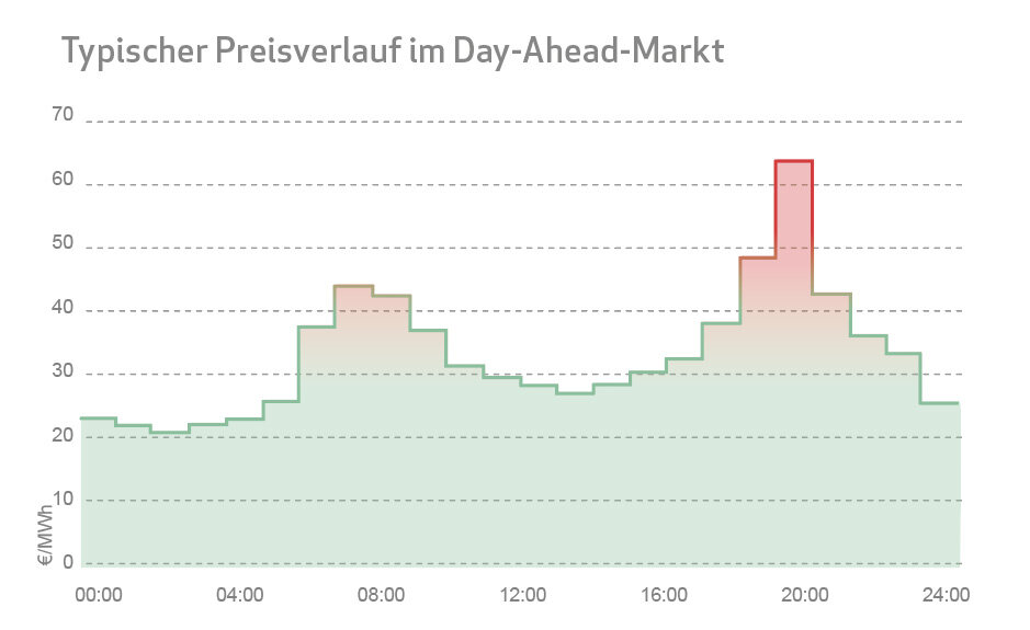 - Einsparpotential durch dynamische Tarife: Die viertelstundengenaue Aufzeichnung und Abrechnung des Stromverbrauchs zum Börsenpreis können helfen, Kosten zu sparen, wenn es gelingt, die Stromabnahme in günstigere Stunden zu verlegen.