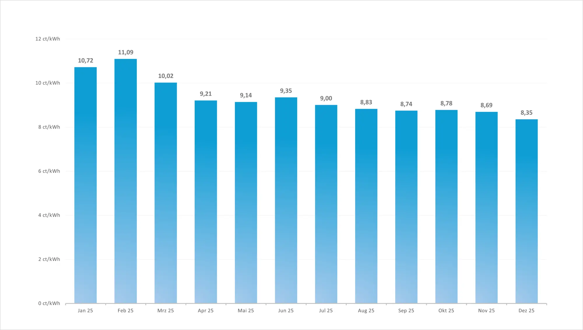 Der Arbeitspreis wird jeweils am ersten Werktag jeden Monats für den zurückliegenden Monat berechnet. Wir informieren Sie per Mail zu den Entwicklungen und zu Ihrer individuellen Preisstellung.