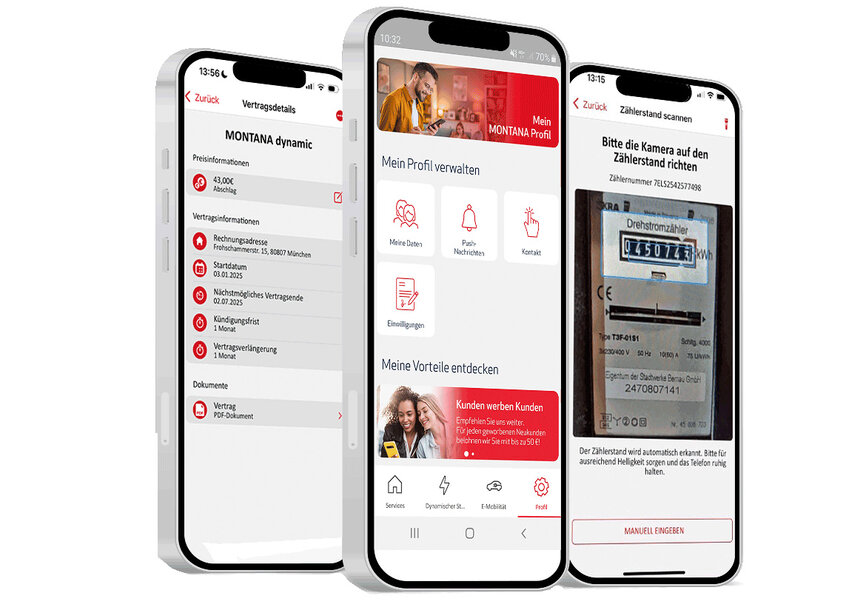 Holen Sie sich jetzt die praktische MONTANA App und behalten Sie Ihre Gas- und Stromverträge jederzeit im Blick – unterwegs und zuhause.